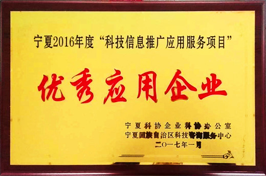 寧夏2016年度“科技信息推廣應用服務項目”優秀應用企業