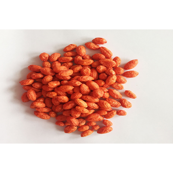 真空冷凍干燥枸杞果,是將精選清洗的枸杞鮮果速凍,溫度降至-45℃以下時,組織細胞中的水分完全凍結,液態水變為固態水,此時溫度在共晶點以下,凍結的枸杞鮮果處于高真空狀態,固態水開始升華為汽態水,干燥箱和冷凝器之間存在飽和蒸氣壓差,汽態水從干燥箱通過管道向冷凝器流動,冷凝器溫度低于-55℃,汽態水在冷凝器中又凝結成固態水,這個過程持續到被干燥物質中的水份完全升華完畢。凍干枸杞粒,泡水后口感接近新鮮枸杞的原味。干燥后的枸杞果生物活性有效成分破壞極小,枸杞果外形保存完好,色澤紅潤,晶瑩剔透,含水量<5%,便于運輸和長期貯存。